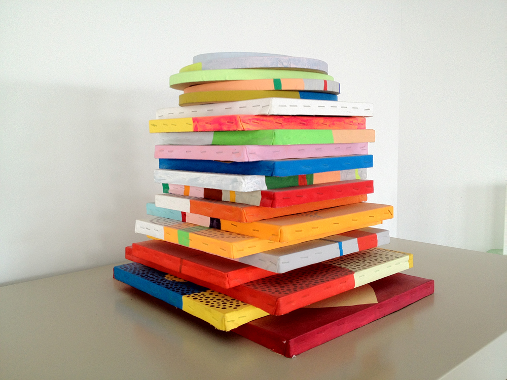 i have a number of rejected paintings, materials and drawings hanging around the studio which have playfully taken the form of painted objects. these are in some ways my “leftovers”. they have a subliminal influence on myself and my wife but they also draw questions from visitors who are surprised that they have a subordinate and somewhat cast off status.