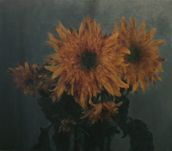 My main work is psychological portrait paintings. But every once in a while the history of portraiture starts to feel like painful baggage to me, rather than an interesting challenge, and instead of feeling excited by that painting history, I start feeling anxious and confused. Painting flowers is great fun, because they are kind of like stand-ins for heads, but don’t carry the overt psychology of human subjects. They are also extremely beautiful and sensual, but can feel slightly creepy and translucent and fleshy and rotting. -Jenny Dubnau, 2012