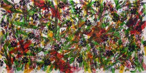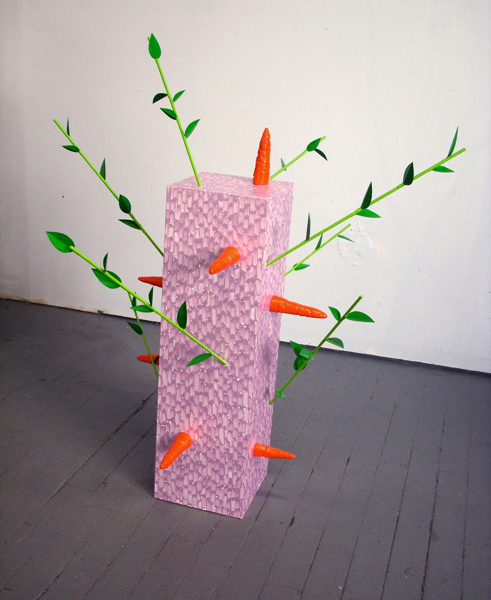I don’t usually collaborate or work sculpturally. In 2009 I had an opportunity to collaborate with my wife, Linda Ganjian. Linda is primarily a sculptor. I was excited (and nervous) to do something three dimensional with her and learn something about the process of working collaboratively. Out of the five sculptures we made, “Tower of Carrot Noses” was not my favorite or the most interesting, but it certainly was the most unexpected. It continues to puzzle me. I also chose this one because it has a motif of branches with leaves which has been cycling through my work for the past decade or so even as my work has changed quite dramatically.