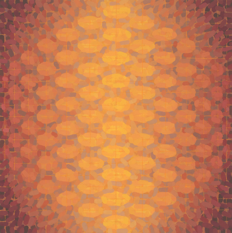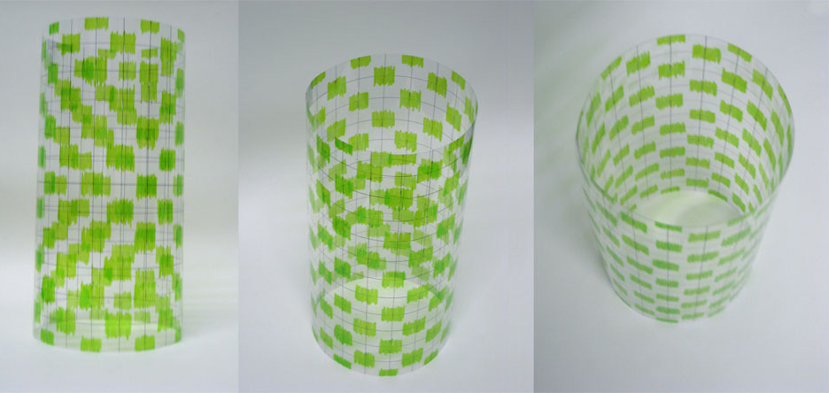 When illusions of three-dimensional, rounded forms started appearing in my paintings several years ago, I was curious to see what one might look like in real space. So I made this cylindrical drawing (photographed from 3 angles), which helped me visualize the space between the front and back of that type of form. I did some sketches from it, but soon realized that it was more interesting as an object in itself than as a tool to make paintings or drawings from. It’s still on a shelf in my studio, and I like seeing it out of the corner of my eye as I paint, working with an accumulation of color and mark to develop related structures. -Rachael Wren, 2012