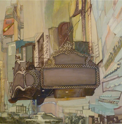 I usually have my camera with me whenever I walk out the door. Taking snapshots in the city is a direct way for me to draw from life, collect images, and forage for ideas and narratives. However, in the studio photography takes a back seat. My process in the studio is all about synthesizing my physical and visual experiences. I keep the creative process as open as possible by layering paper fragments with paint and other materials until the collaged painting’s structure feels complete and stands on its own. I’m always surprised when I go back and look at photos from a particular day and see how they’ve left their impressions on a finished work. -Kyle Gallup, 2012