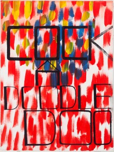 I enjoy the conceptual and compulsive pleasures to be had in the rhythmic painting over/crossing out of words, ads, obituaries, financial statistics, sports scores, world events, phone numbers, names.