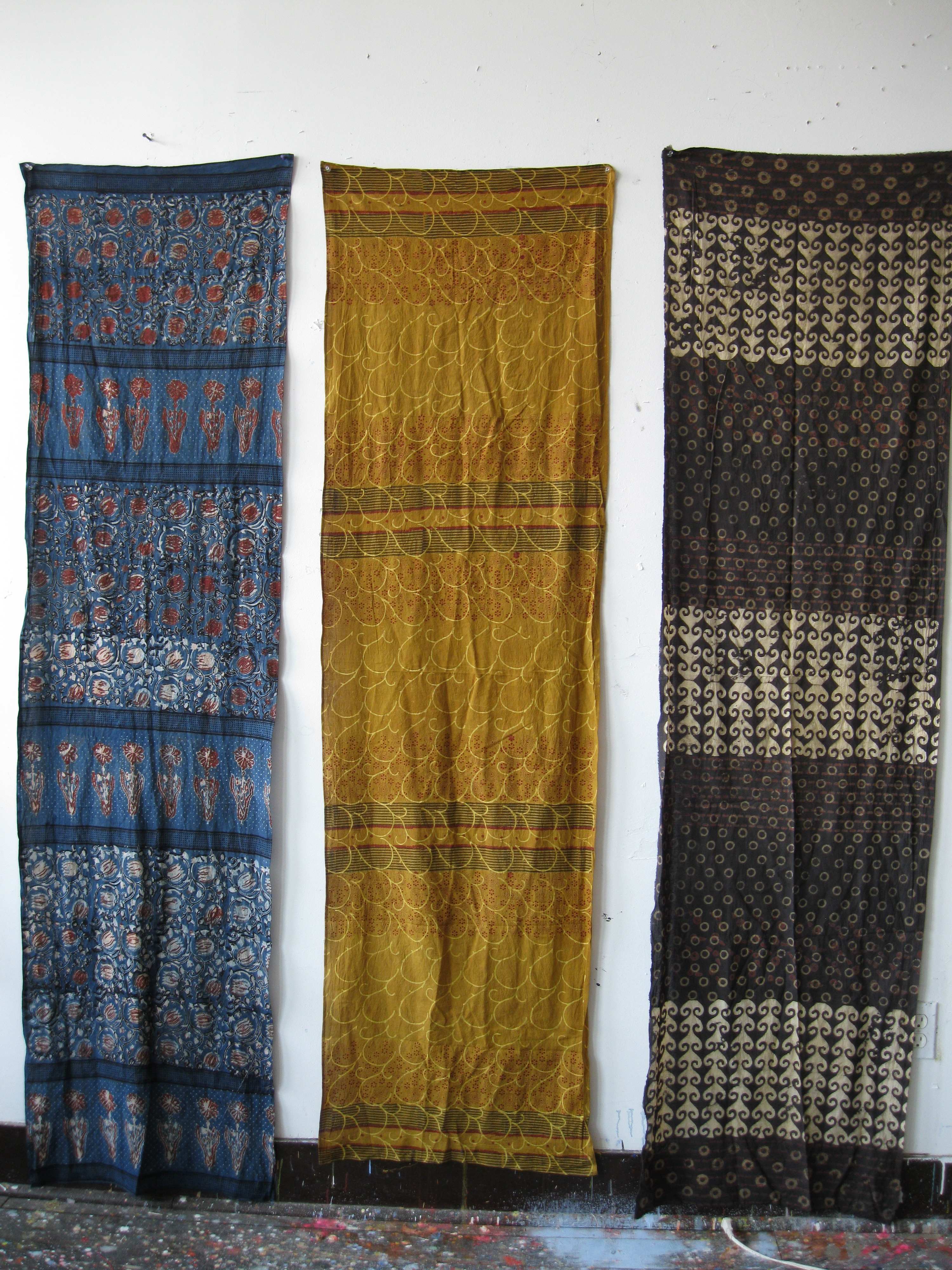 Last year I went to India for the first time. The colors, the spiritual warmth and loving social environment overwhelmed me. I knew I wanted to study dying fabric, but I was surprised to find myself falling in love with traditional block printing. It fueled my latest body of work: when I came back to my NY studio, I began bleaching patterns into bedsheets in response to this immersion into traditional craft. Last month, I returned to India to soak in the colors and incredible craft for a second time. I couldn’t have been more inspired. -Lauren Luloff, 2012