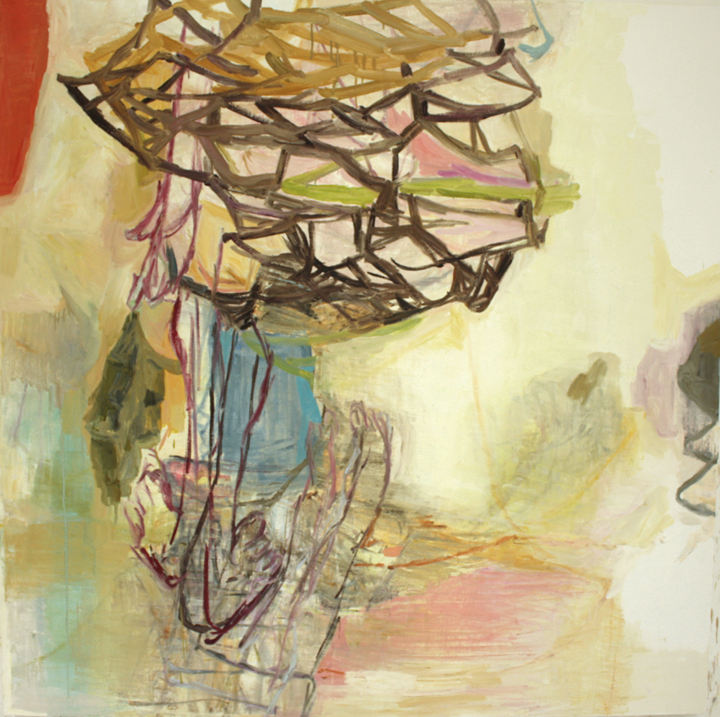 My primary work is oil on canvas. In these works the images flirt between fragmented figuration and abstraction. There are elements of a quasi narrative being constructed but never completed. I always struggle with the works on canvas. In my head they are more weighty. I’m suspicious when they seem to come to quickly and I labor with them, constantly revising. I beat the canvas up- scrape paint away, put it back, trying to find the balance between right line that is both tentative and true, refined and awkward.