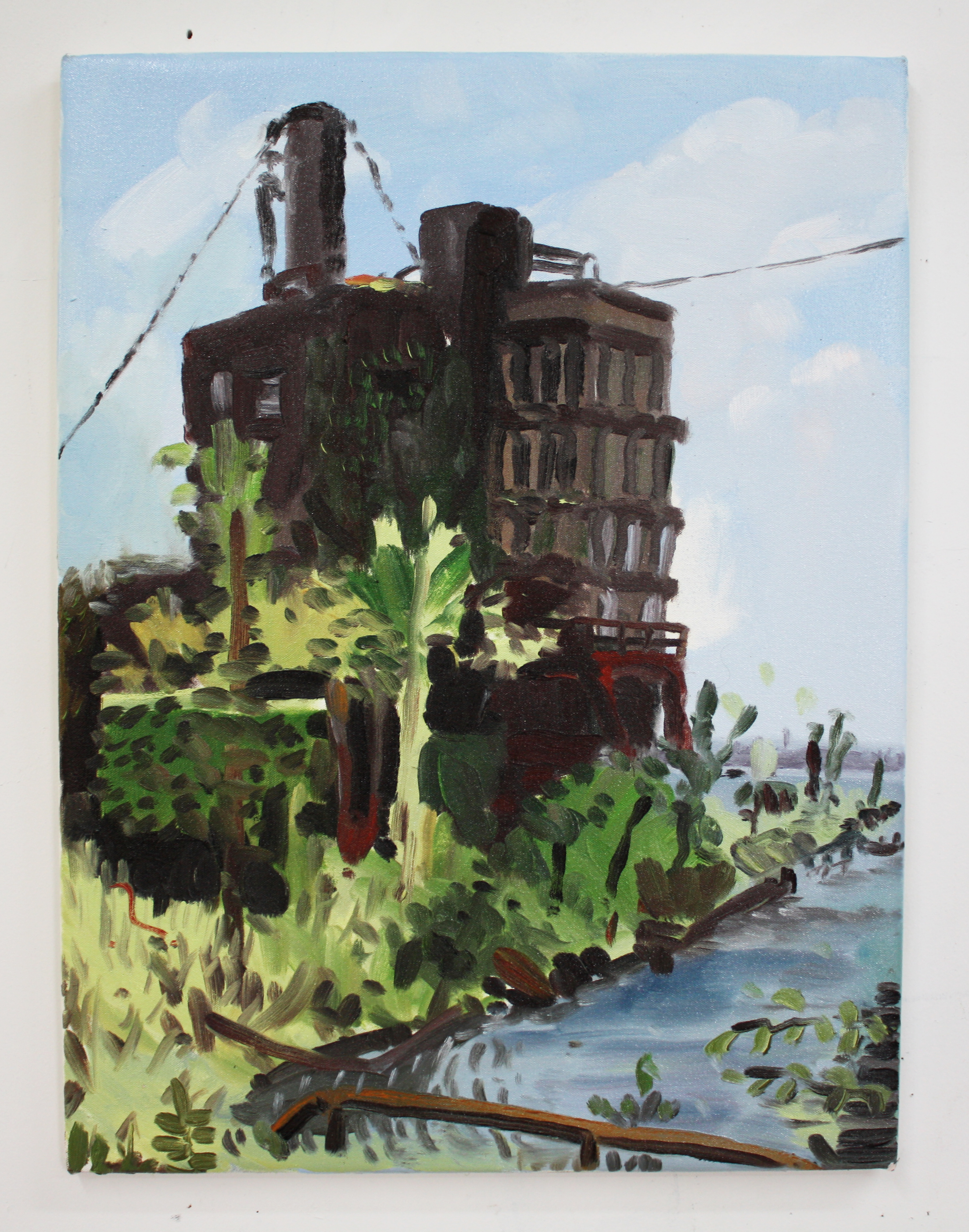 As part of my project over the past few years I’ve been making ‘on-the-spot’ observational paintings. Whenever I travel around, I usually bring my painting gear, and try to set up in front of anything that could make for art. The two paintings shown here were made this summer in Sunset Park, Brooklyn. ‘Smokers’ is more of a sketch. I looked out of my studio window and saw three women smoking on the opposite stoop– I had to paint fast to get a semblance of the scene before their cigarette break ended. I made ‘Industrial Waves’ today by the edge of New York harbor. This painting is also quick, but I managed to capture the light and atmosphere mostly how I saw it. In this sense I consider it a complete painting because I would not add or take anything away. I might however go back to that spot later in the week and try another one. –Daniel Heidkamp, 2012