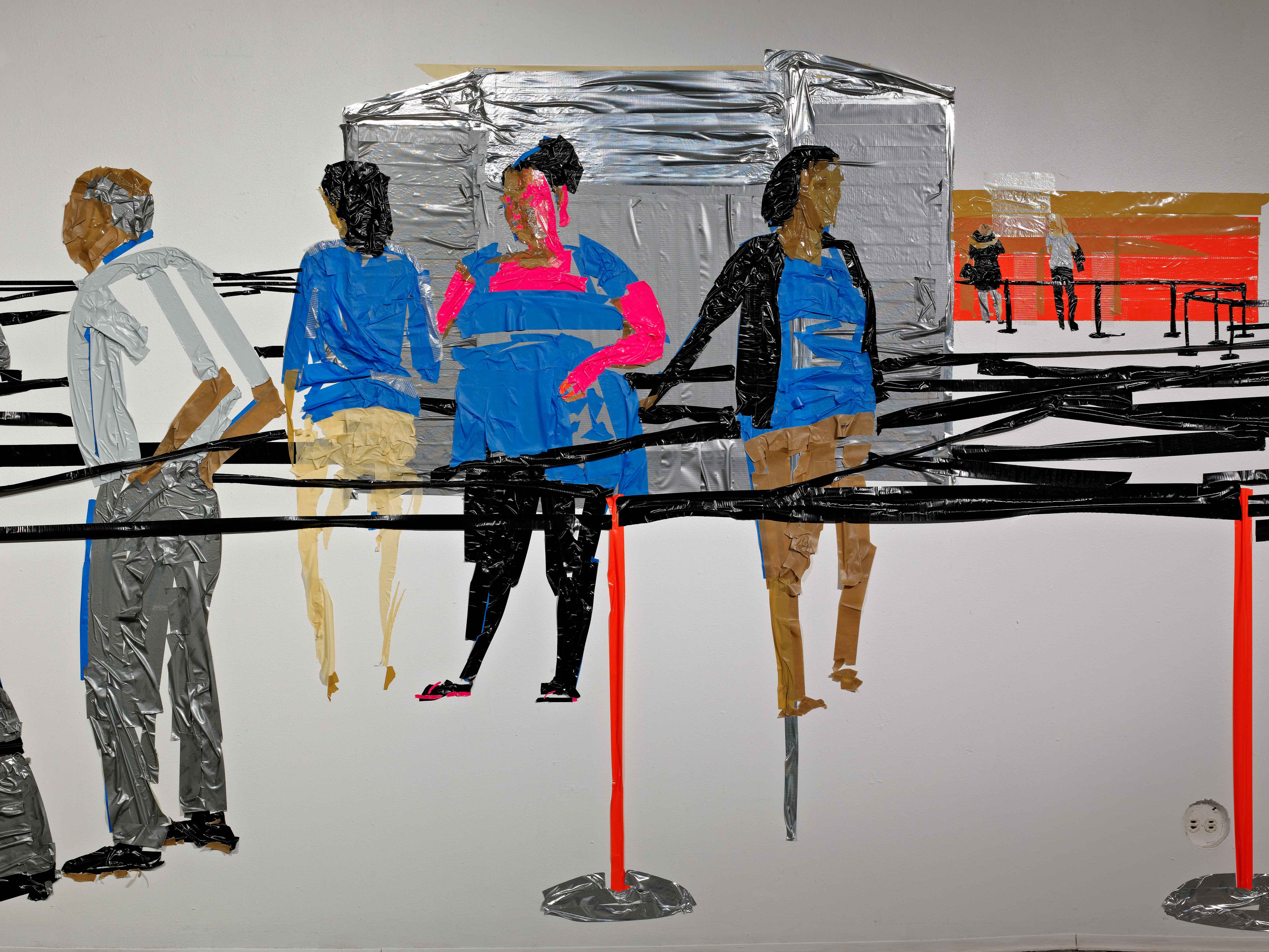 Airport In Security (installation view), duct tape on wall, 44’x12’, 2012