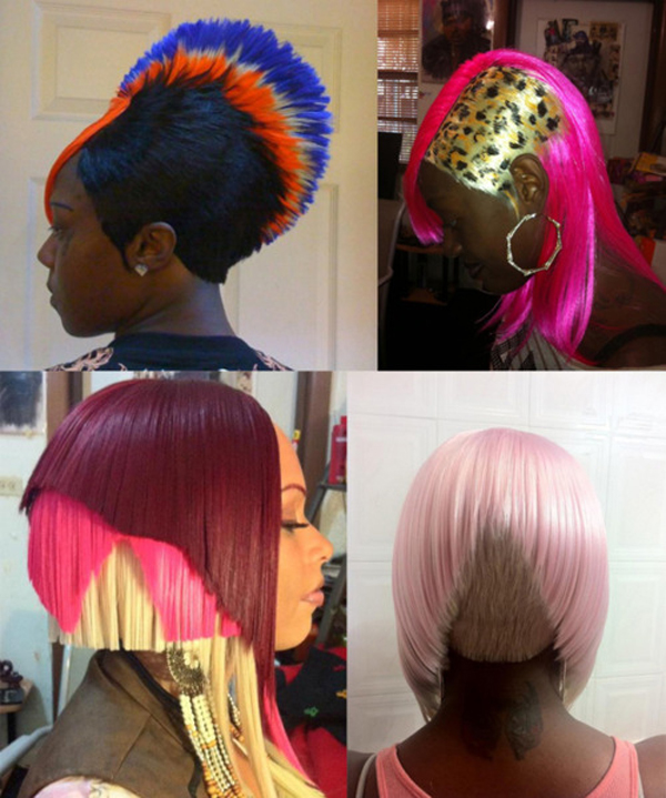 My initial plan for this painting was to fill up the canvas with found text that I’d assemble and paint in a specific way. But as the painting progressed and the idea fell flat, it evolved into something else—like a giant robotic figure. Once the painting was done I began to research intergalactic images which led to funk music and its fashion styles. I stumbled upon this photo during my search. I feel a kinship with these hairdos. There is nature versus the artificial; the loose versus the hard edge—recurring elements that are also at play in my work. Their hair has been painstakingly styled into precise sculptural and geometric forms in bright, saturated colors. It’s a deliberate process, yet daring and dynamic in its spirit and final resolution. I’d like to think of it as a type of free-fall—in a controlled-paint-drip-kind-of-way. Erika Ranee, 2014